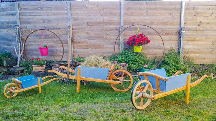 Longueur : 5 mètres, diamètre de la roue : 1mètre 50