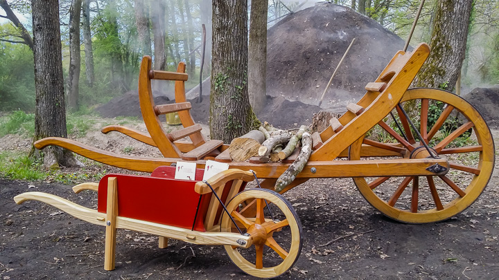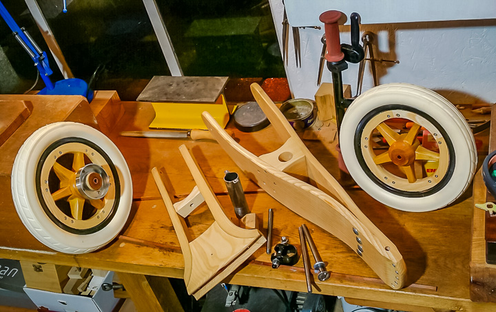 J’ai ensuite adapté un tour à bois pour tourner les moyeux, j’ai forgé les clous et autres ferrures…
